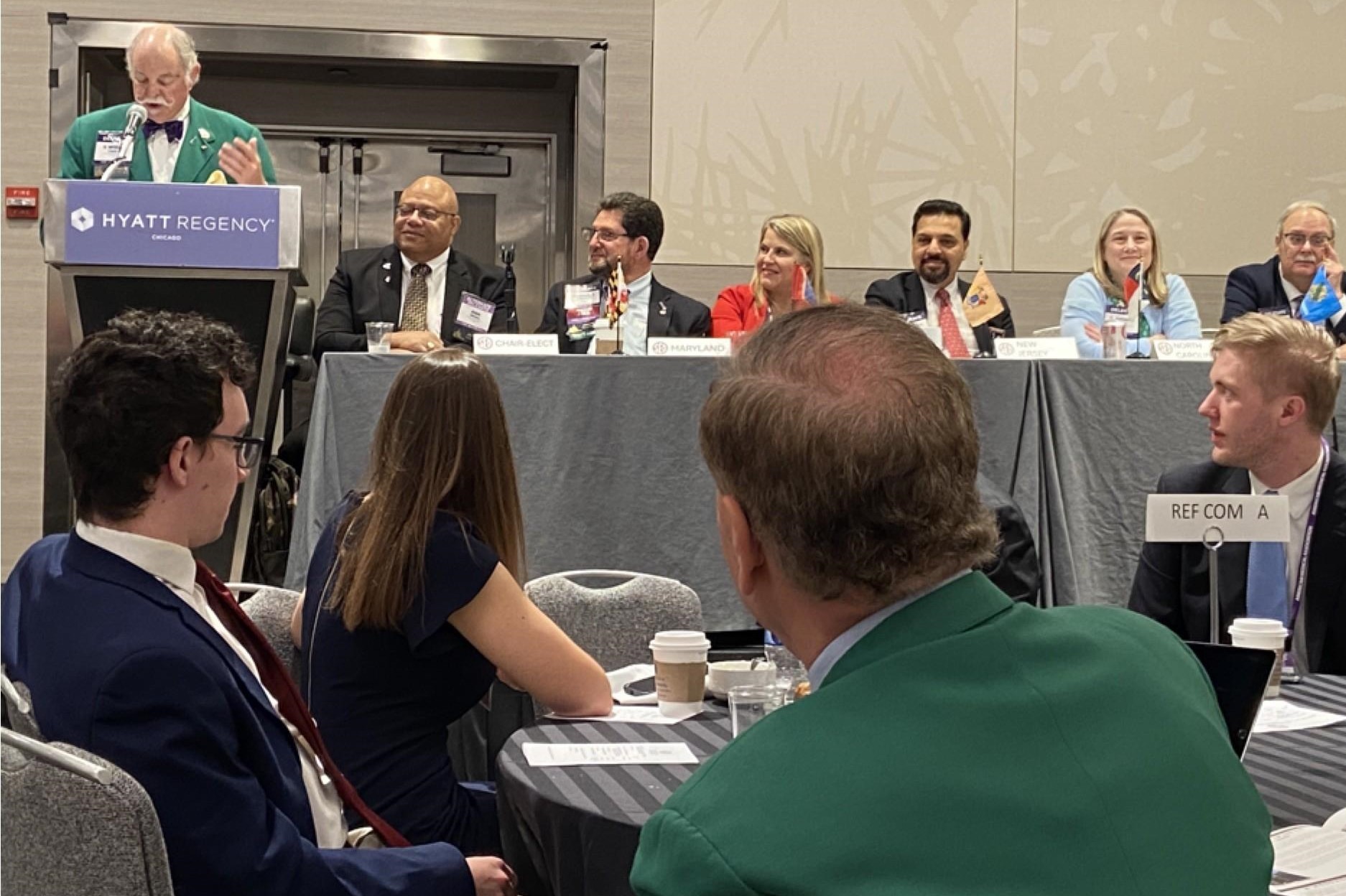 (CHICAGO) — Members and staff of the North Carolina Medical Society traveled to Chicago for the 2024 Annual Meeting of the AMA House of Delegates. Members Dr. Justin Hurie from Winston-Salem and Dr. Rebecca Hayes from Charlotte were both included in presentations. Dr. Hurie spoke in the Reference Committee on behalf of the NCMS delegation and Dr. Hayes represented NCMS at the South East Delegation breakfast.